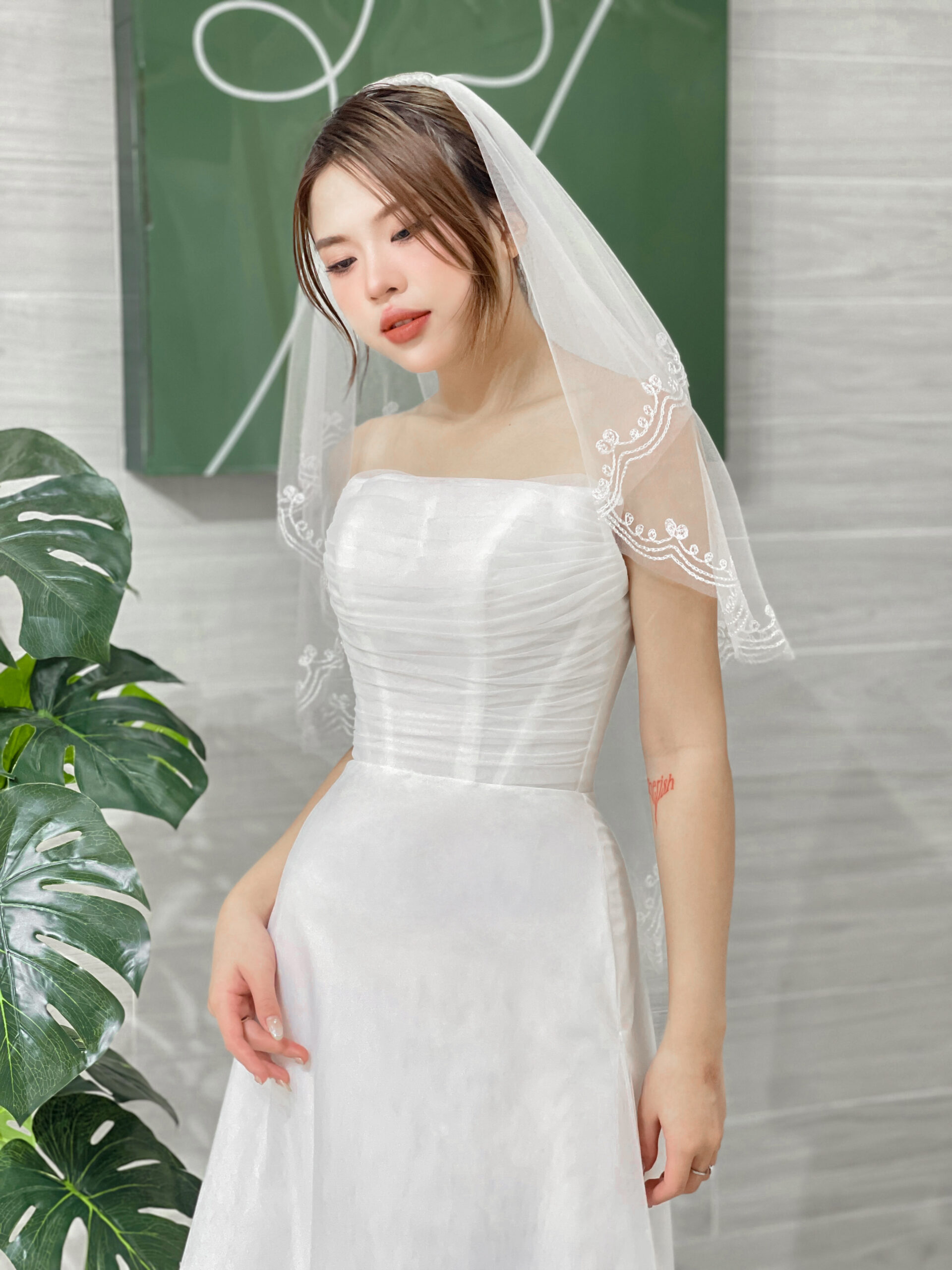 Váy cúp ngang chất liệu mikado satin cao cấp xòe nhẹ (AL-C3)